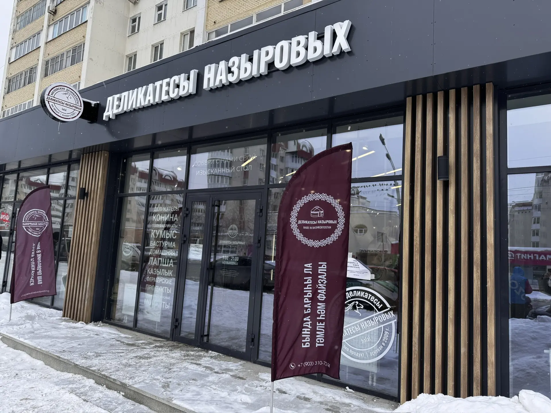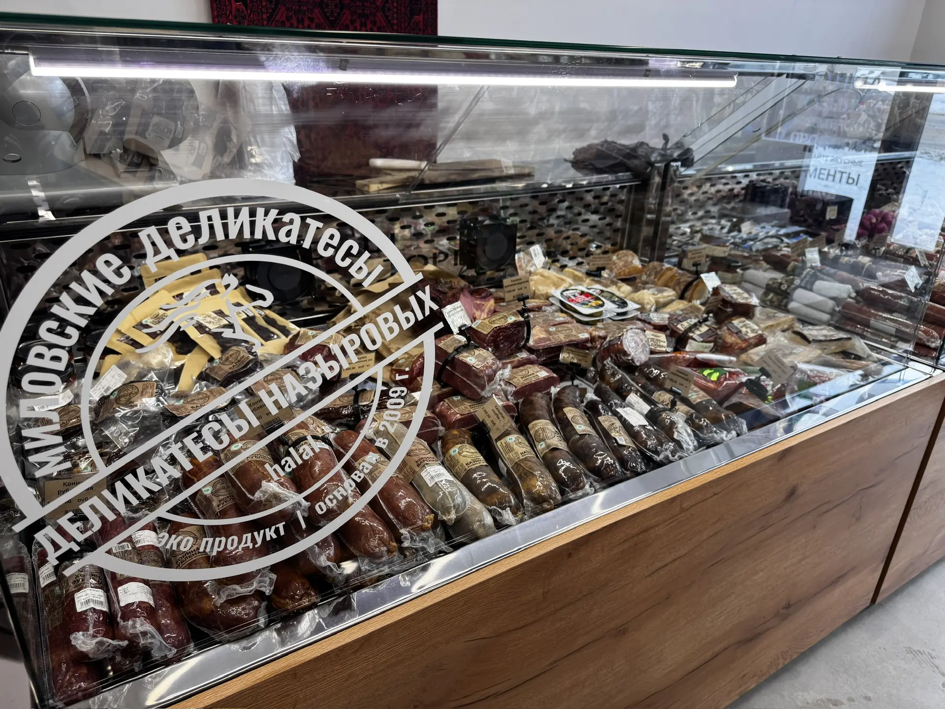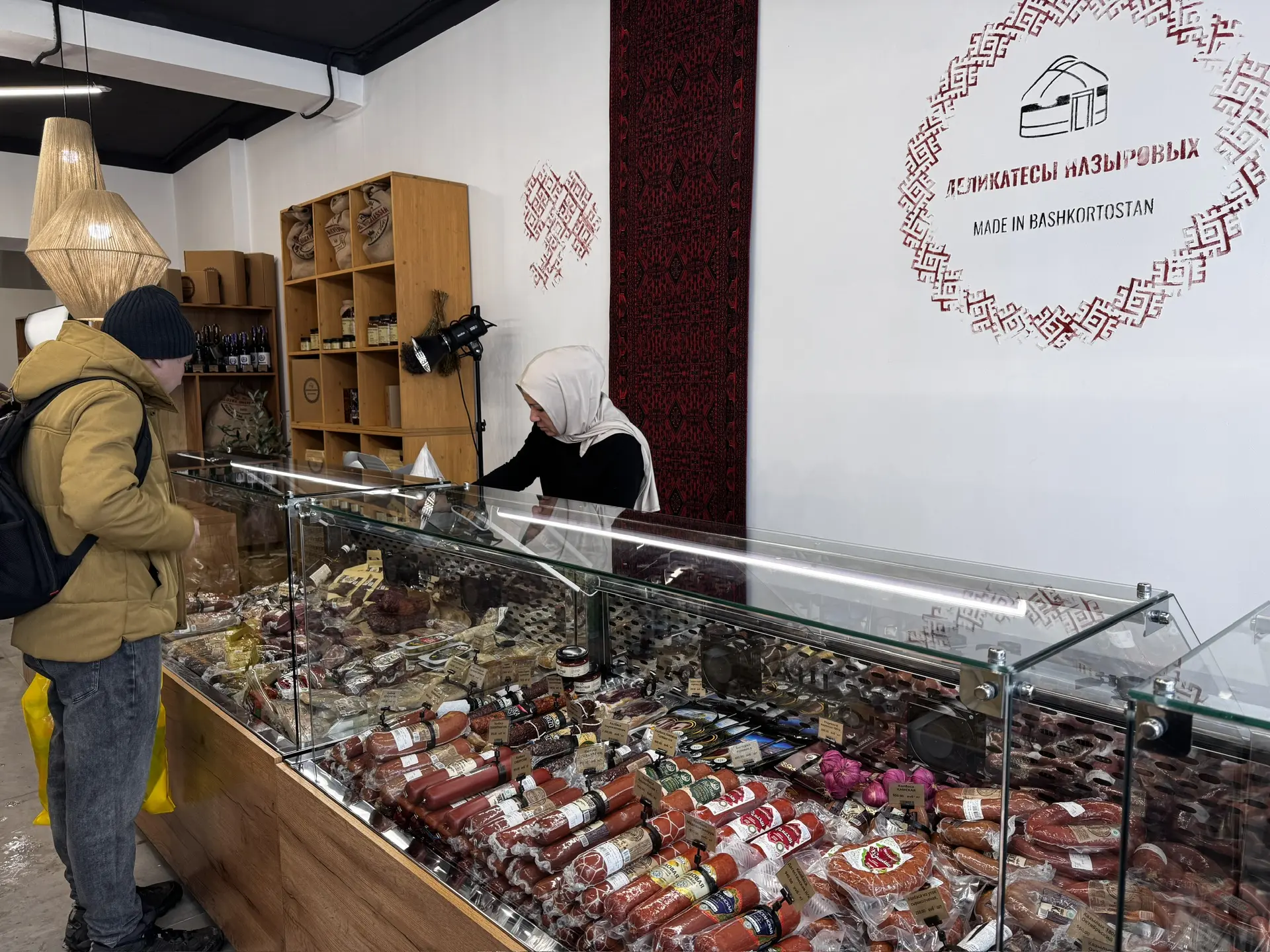 Новый магазин представляет собой пространство в этностиле с башкирским колоритом. В ассортименте: натуральные колбасы и мясные деликатесы, мясо конины, фермерские полуфабрикаты. Кроме собственной продукции для удобства покупателей в магазине реализуются молочные продукты, хлеб, выпечка, кондитерские изделия, чай и напитки других региональных предприятий.